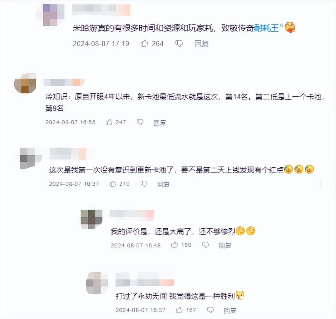 這可能源於角色設計和強度未達玩家預期,而且艾梅莉埃在上線前的節奏也是影響玩家抽卡興趣很大的因素。根據統計數據來看,艾梅莉埃的抽取率似乎都比不上覆刻的夜蘭。更遺憾的是,本次卡池並沒有超某音時長,這也是反映本次卡池流水最直觀的數據。因此不少玩家表示本次流水可能是創造了楓丹最低卡池流水。