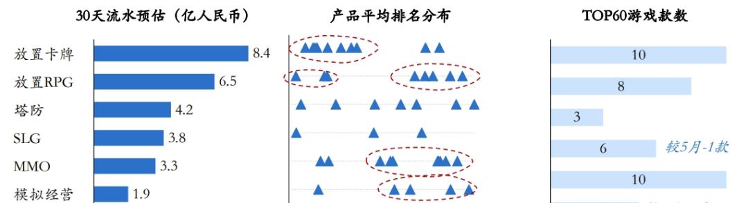 數據源自6月微信小遊戲暢銷榜,頭部產品侷限於幾個主流品類或者說玩法原型