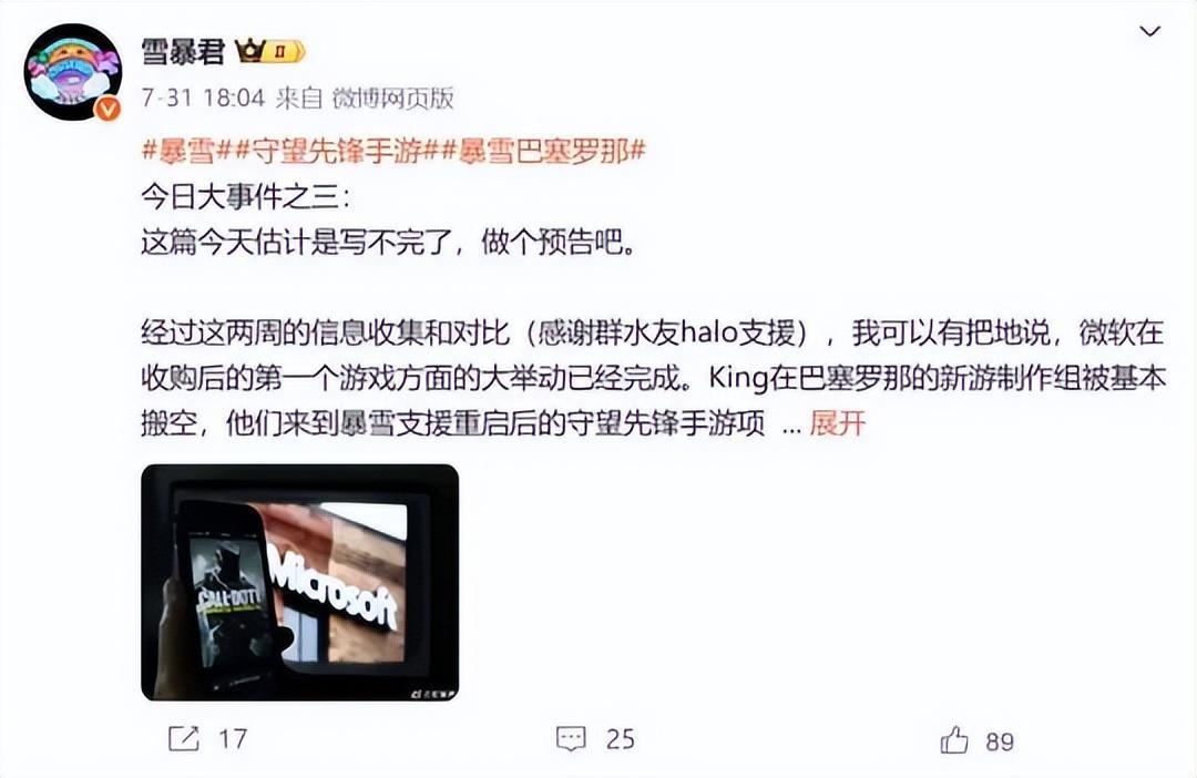 同時,近日博主“雪暴君”也爆料稱暴雪將重啓守望先鋒手遊。