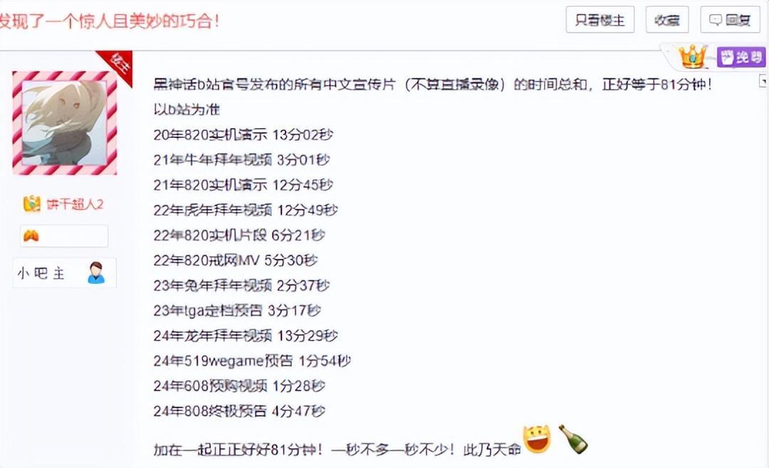 神通廣大的貼吧網友更是憑藉此前幾次播片的細節,表示《黑神話》公佈的全部演示加在一起,時長正好81分鐘,對應了取經路上的81難。
