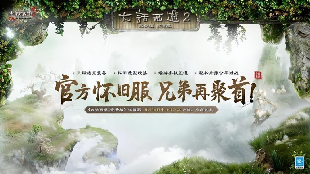 《大話西遊2免費版》正式宣佈按照玩家意願推出三種族版本且時長免費的官方懷舊服,8月15日中午12:00正式開服!