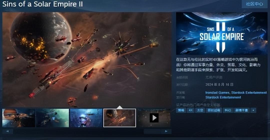 實時4X策略遊戲《太陽帝國的原罪2》發售日公佈,該作將於2024年8月16日發行,遊戲支持簡體中文。