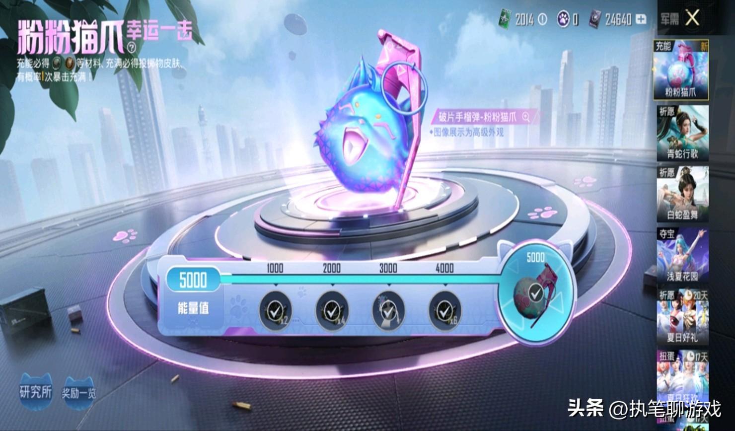 首先可以確認的告訴大家:粉粉貓爪並非是常規的次數抽獎,而是採用“充能”的方式來抽獎,一旦充滿必得投擲物皮膚,並且有概率1次暴擊充滿。請注意:1次充滿的概率微乎及微,傳說中的“天選之子”纔有機會。
