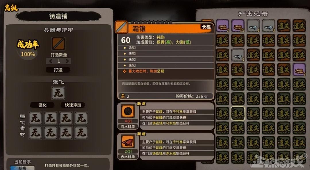 遊戲中武器增加的戰力最多,高等級武器的售價也十分高昂,在鑄造鋪中通過SL大法不斷讀檔規避失敗,最後成功打造高等級武器後直接買掉就能賺很多錢。