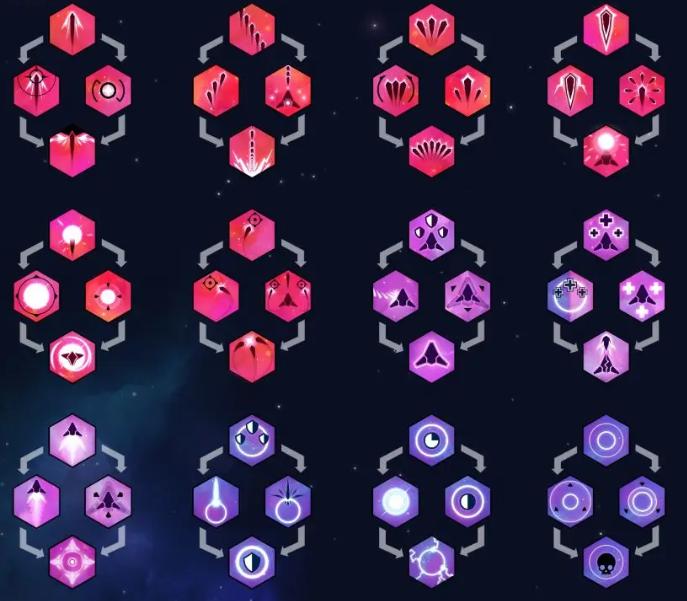 在遊戲中,開局最初的三次升級會給你的飛船固定一個基礎的流派方向。