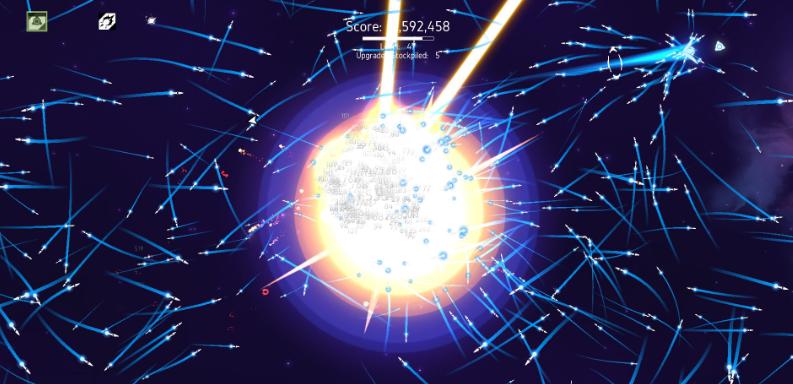 玩家操控飛船遨遊銀河,一邊利用飛船自帶的彈幕打怪,一邊苟且升級,選擇不一樣的科技。