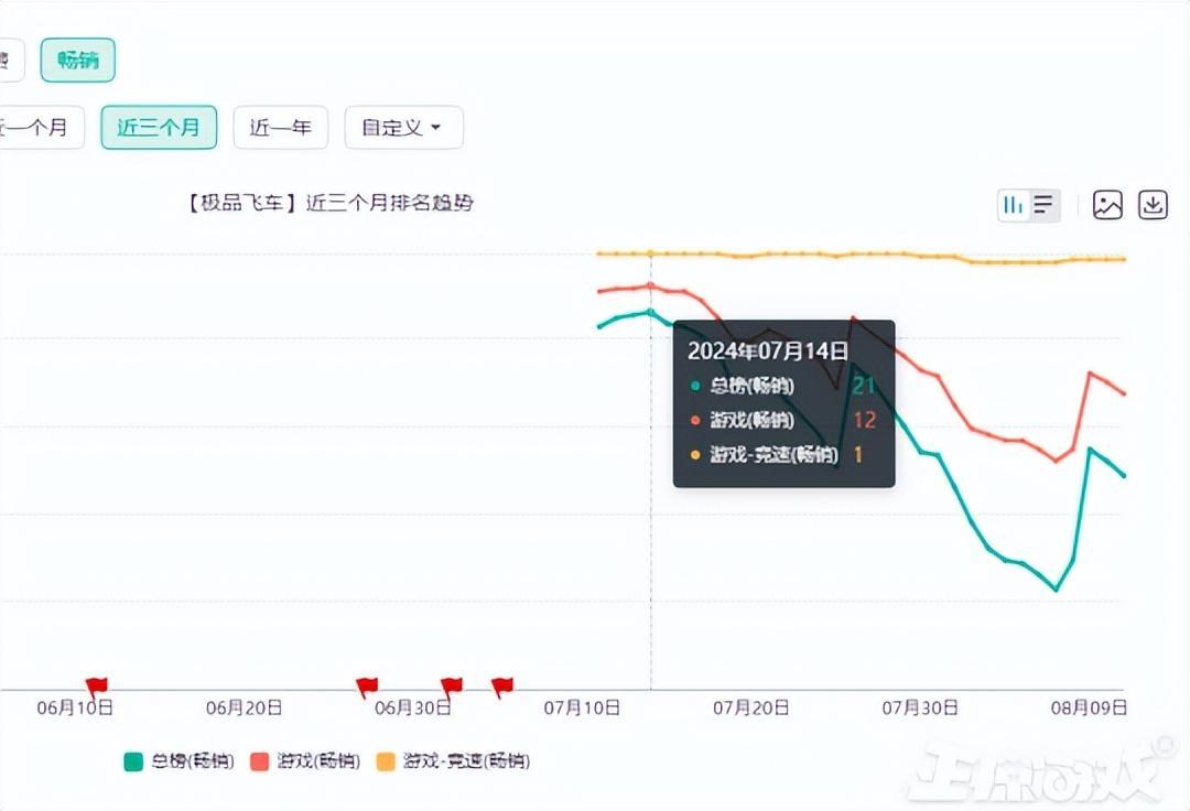遊戲在iOS暢銷榜排名最高達到第12位,之後一直穩居暢銷榜競速遊戲TOP1的位置。遊戲上線後全面接入渠道,按照國內數據機構預估,遊戲首月流水在IOS和安卓平臺1.5億左右。由於《極品飛車:集結》官網接入高清PC模擬器,首月全平臺收入很可能在1.7億元左右。