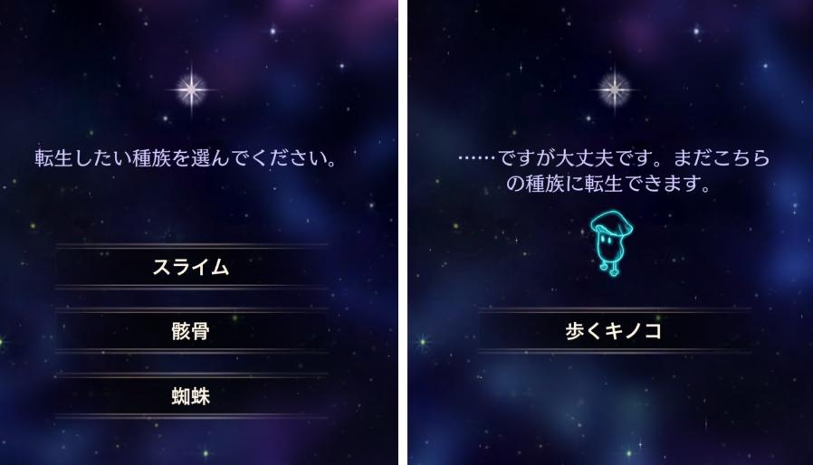 其中,劇情是很多日服玩家吹捧的要點,遊戲劇情裏有很濃的日系動漫作品痕跡,以及相關的經典梗。比如開篇的轉生選項「史萊姆」「骨頭」「蜘蛛」就分別對應了三部高人氣異世界穿越作品,也快速幫玩家形成「異世界穿越」的印象。
