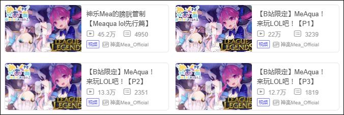 企業勢的身份,也會影響到一些主播的個人相關。早年B站有一個“meaqua”的標籤,涉及到了兩位Vtuber,除了阿誇另一位是個人勢活動的神楽めあ(後文簡稱:Mea)。