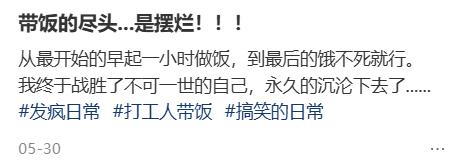 許多年輕人最初是爲了省錢或者省力才決定自己帶飯上班的,現在也開始想要擺爛了……