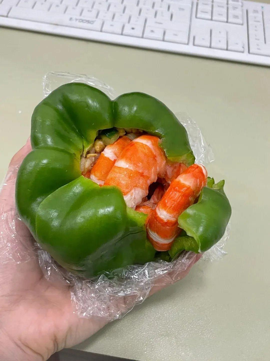 而愛喫辣的朋友,則以“竹筒飯”爲靈感,搞出了“辣椒筒飯”,他們把辣椒挖開,然後把飯塞進去。看上去幹淨又衛生,連炒菜的時候都能省點調料了。