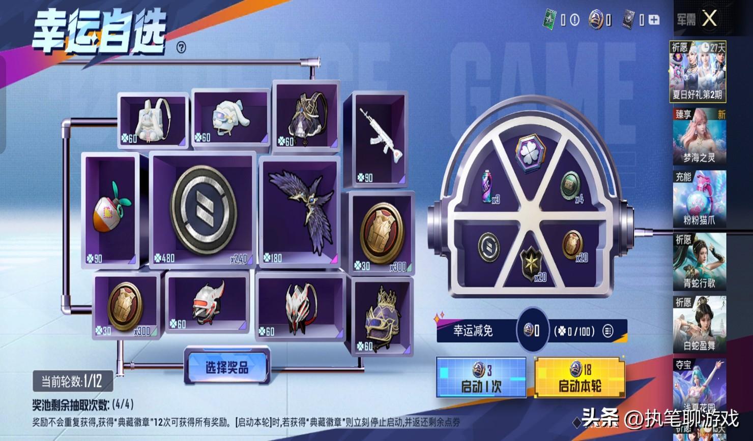 但是光子又經常不按常理出牌,以幸運轉盤裏的小轉盤爲例,在“夏日好禮”出現之前,均是在和平小店出現,從轉盤抽獎變成直售的大禮包。但是在“夏日好禮”到來之後,小轉盤的返場也出現在遊戲裏了,而且還採用幸運自選的方式來進行抽獎。