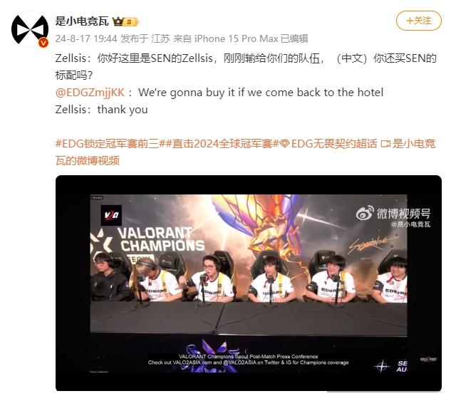 這句話既回應了SEN陣中選手zekken對中國戰隊不尊重的言論,也抬了ID裏同樣有這三個字母的隊友。