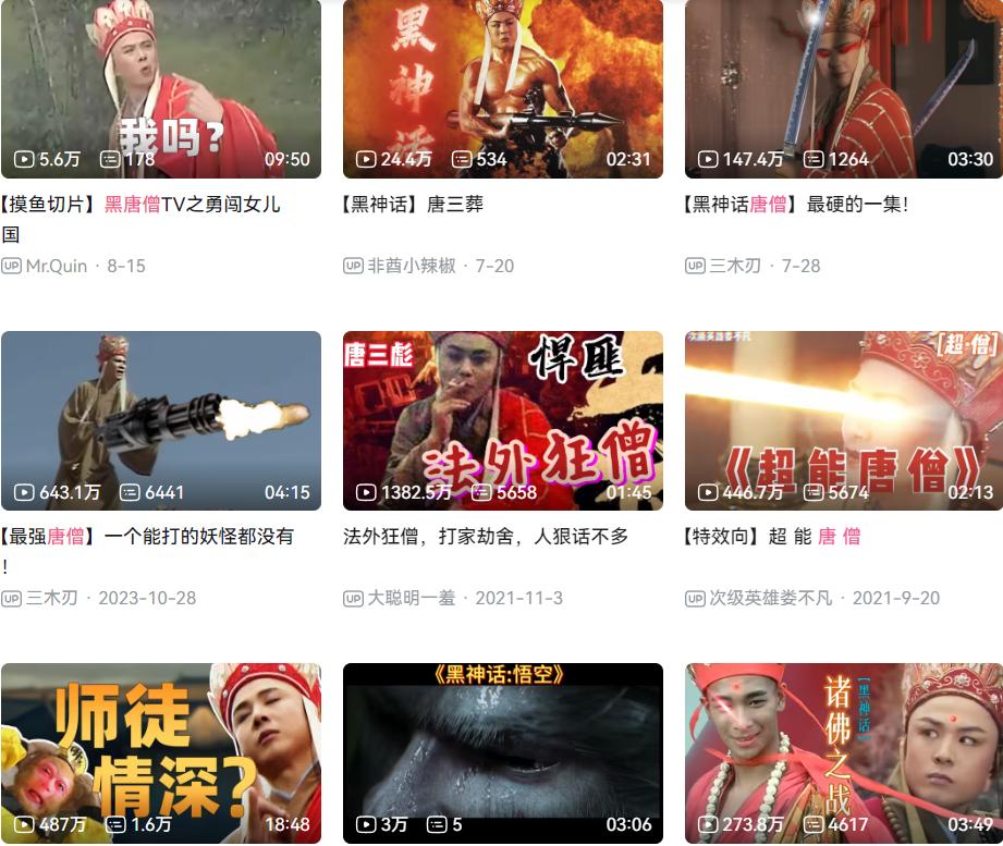 在這篇文章發出去的時候,距離《黑神話:悟空》正式發售只剩下最後的12小時了。應該說大部分讀者點進這篇文章的時候,遊戲已經正式解鎖了。網上近幾天熱議的,《黑神話:悟空》的MC評分是否被某些外媒惡意打壓,一切都會在發售後自有公論,屆時再狠狠清算也不遲。所以今天,咱先不聊猴的事,來看看一個更炸裂的玩意,樂得我鼻涕泡都從腦門上冒出來,更是搞明白了爲什麼黑神話只有悟空而沒有唐三藏。因爲,如今在B站鬼畜區,大夥印象裏慈眉善目的唐長老,已經快變成三界四洲第一殺人魔了。可能是臨近遊戲發售,大夥的精神狀態越來越癲狂。在過去的一段日子裏,“黑神話:唐僧”開始在鬼畜區崛起,動輒百萬甚至千萬+播放量的視頻,像獅駝嶺的小妖精那樣層出不窮。用一句“大人,時代變了”來形容或許都不夠準確。正所謂貧僧法號唐三葬,葬天葬地葬衆生,平生所求,無非抄起RPG,平等地物理超度一切生靈。恰好手中搞到了一件西洋玩意,可比貧僧那不成器大徒弟的金箍棒好用多了。想當年的大唐,是遍地黃金的大唐,也是妖魔橫行的大唐。今天的故事主人公,就是蕩平牛鬼蛇神的取經四人組,讓我們跟隨鏡頭,一起走進屬於他們的風雲往事。科技強國,工業興邦。大唐的發展和強盛離不開大唐重工,各國看到通關文疊無不蓋章放行,這也是西行得以順利推進的幕後原因。但取經之路,依然險象環生。面對盤絲洞蜘蛛精人手一把M4A1,唐三葬七進七出殺得天昏地暗,也未能將妖精團滅,只得尋求南無加特林菩薩的火力支援。有人偷偷錄下了唐長老誦讀的經文,據說翻譯成中文是這樣的:大日如來聚變佛,億兆祥光熔星河。萬千業障星寂滅,誠念氘氚婆羅多。