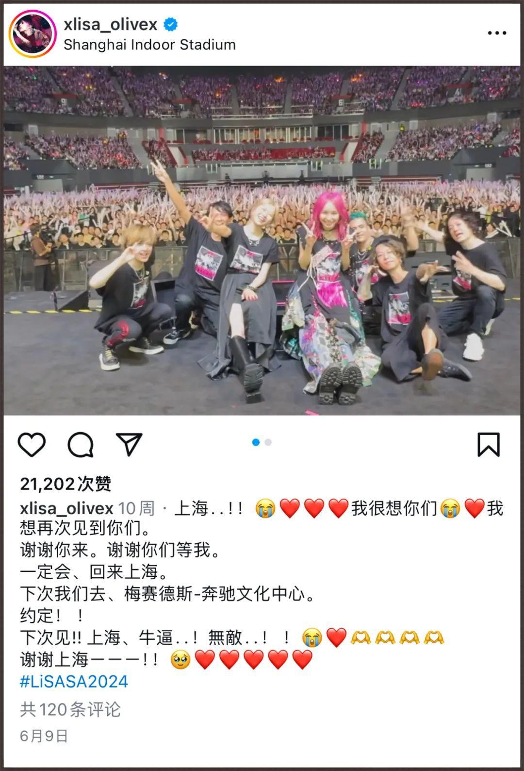 我之前LiSA(織部裏沙,代表作鬼滅之刃主題曲《紅蓮華》)也在演唱會上說她已經預定了明年的梅奔場子。