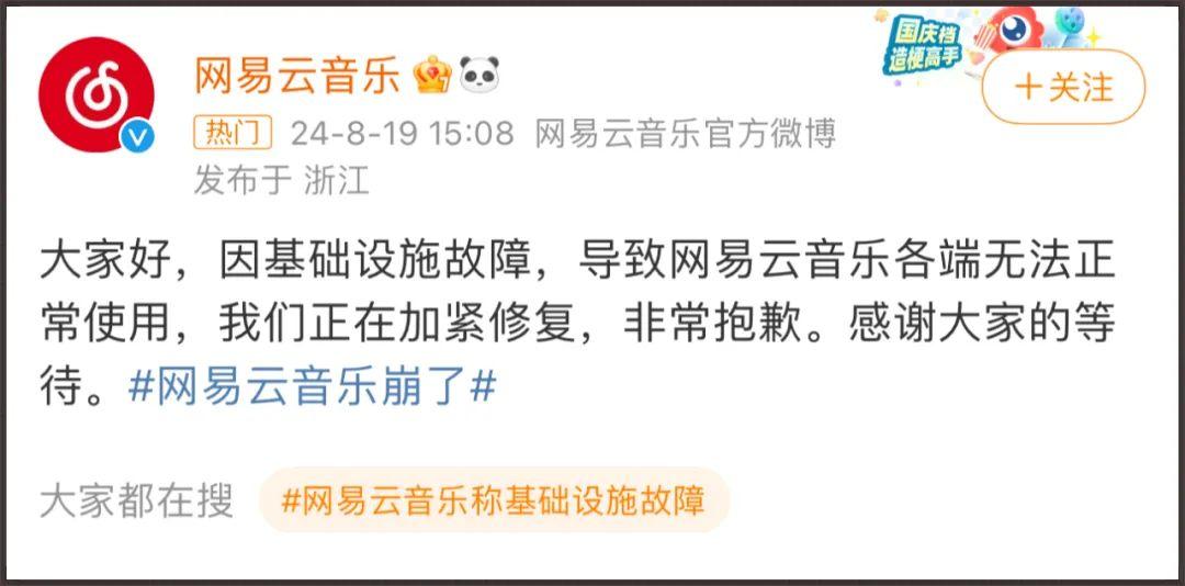 網易雲音樂崩潰上熱搜