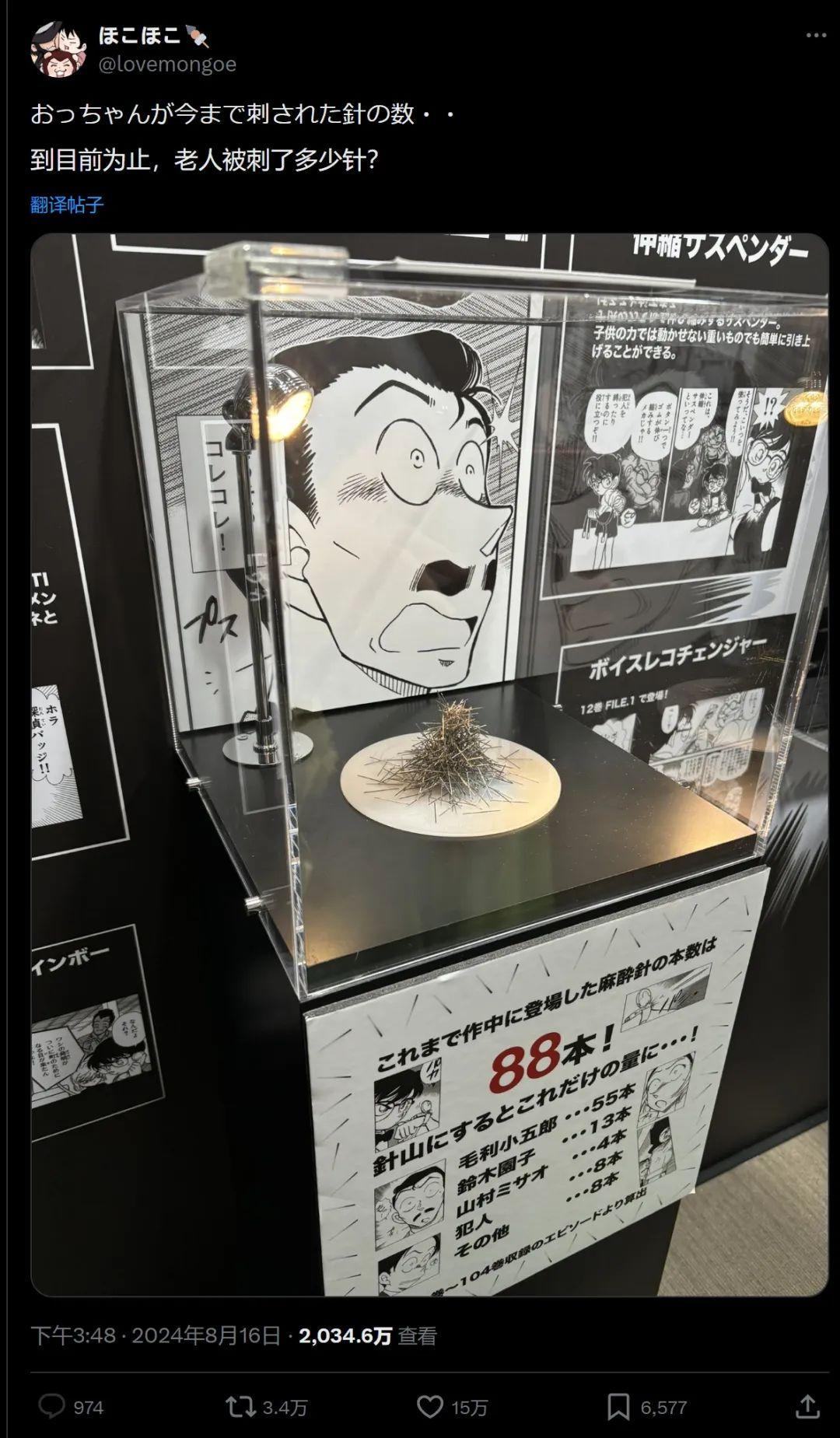 星彡P點評:大概是在一個線下展裏,用很直觀的方式堆了同樣數量的針頭出來。不過只統計了漫畫原作的數量,如果加上動畫原創就不止這麼一點了。