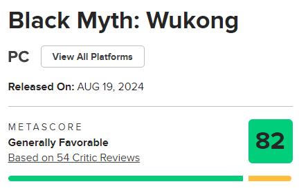但可能還是會有一些持幣觀望的朋友,畢竟在另一邊,海外MC收錄的54家媒體,給遊戲的均分爲82分,提到了戰鬥視角、探索節奏、地圖辨識度、性能優化、本地化等問題。