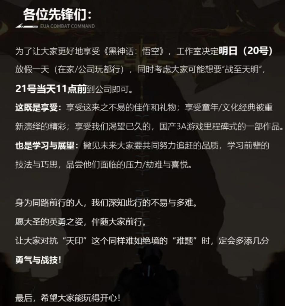 直到預期中的你在《黑神話:悟空》中殺至天昏地暗,現實中的你終於有些恍惚:明天似乎還得上班。