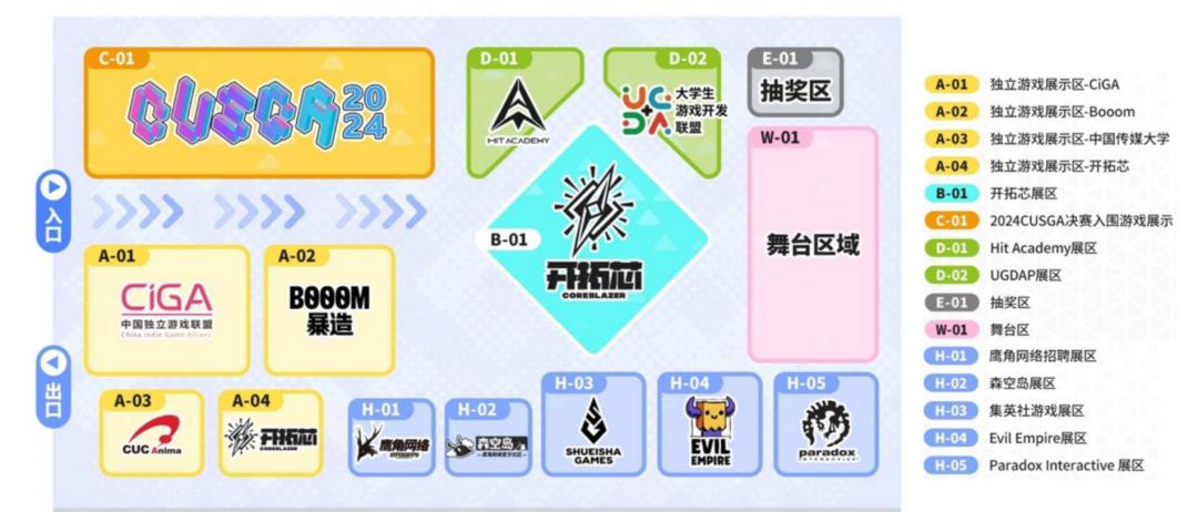 開拓芯爲40個進入CUSGA(中國大學生遊戲開發創作大賽)決賽的作品都設立了展臺,玩家可以自由試玩。遊戲的開發者也在旁邊躍躍欲試地向試玩的玩家介紹自己開發的遊戲。