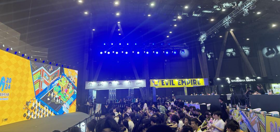 會場安排了幾個不同的片區。左側是入圍決賽的遊戲展示,右側則是合作伙伴支持的獨遊展區,這些大多也是大學生作品。中間是目前開拓芯已經投資的遊戲,其中有不少即將上線的項目。舞臺右側還有P社、EVIL EMPIRE、集英社遊戲等知名遊戲開發商的展區。