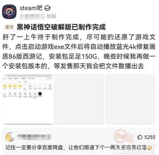 在《黑神話:悟空》開啓預售的時候,曾流傳出某些舅舅黨手裏有遊戲破解版的消息,而一些整活網友也趁着這波熱度,自制了一個會播放86版《西遊記》的學習版,放出去給遊戲小白下載。