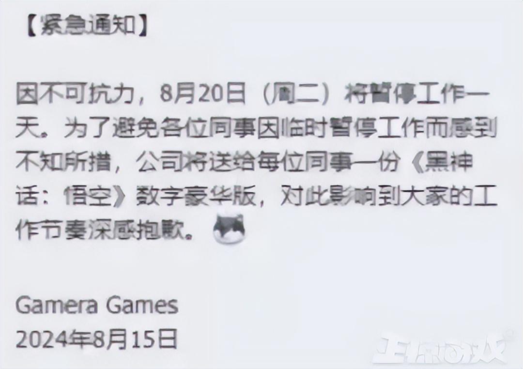 其中,比較亮眼就是《煙火》、《戴森球計劃》等國產遊戲的發行商Gamera Game宣佈將於8月20日放假一天,並贈送給全體員工一人一份豪華版《黑神話:悟空》!