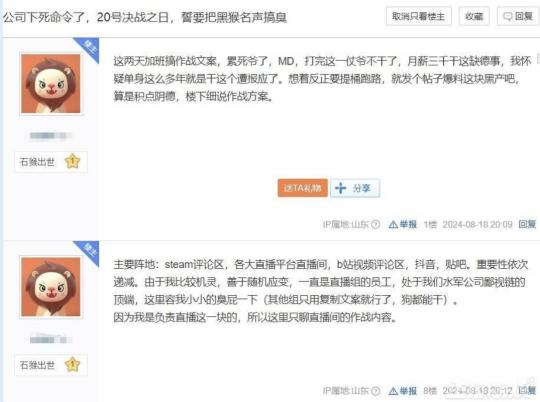 無獨有偶,貼吧也有人爆出來他們公司接了《黑神話:悟空》的差評以及各大直播平臺的水軍業務,誓要在遊戲發售首日把遊科名聲搞臭。
