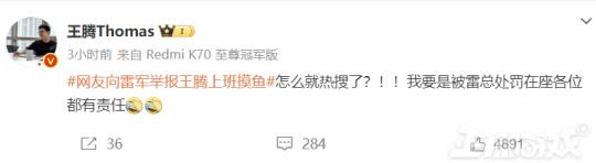 然後,這條微博就在萬千網友的圍觀下被抬上了熱搜,逼着王騰再發一條喊冤:“麼就熱搜了?!!我要是被雷總處罰在座各位都有責任”