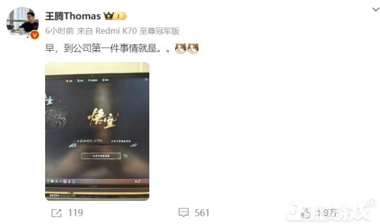 除了打工人請假回家玩《黑神話:悟空》之外,還有不少領導都在工位上偷偷摸摸玩着這遊戲,比如說小米中國區市場部副總經理王騰就特意發了個一個微博稱,他到公司的第一件事就是猿神起洞。