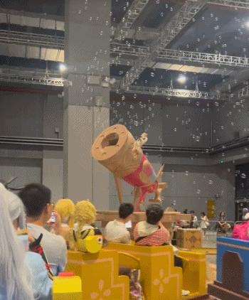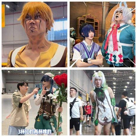 Coser們的才藝也特別卷,什麼宵宮倒立射箭、夜蘭高抬腿壁咚、芙寧娜和那維萊特歌劇表演、龍王藉助平衡車和水槍詮釋大招水龍捲、直接在FES現場擺攤鬥蟲的荒瀧一斗,真是讓圍觀羣衆大飽眼福!