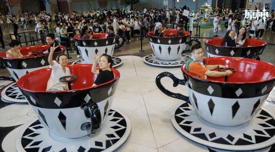 3館的壁爐之家魔術師三兄妹爲大家提供了“壁爐轉轉杯”的旋轉茶杯娛樂設施,長野原煙花店這次不賣煙花改撈金魚了。