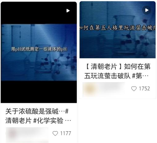 這種屬於互聯網文化的獨一份,即使自己想要復刻,也難如登天,“清朝老片”原本代表的化學實驗視頻也是一樣。