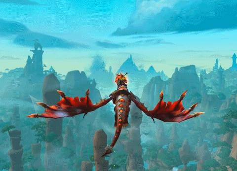 而這是《魔獸世界》10.0版本推出的馭龍術,同樣是消耗精力加速飛行或向上攀升,同樣是高速飛行時會緩緩恢復精力條,同樣也能使用技能回覆精力,甚至這兩者的飛行動作都差不多。