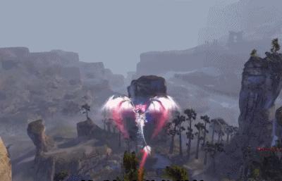 這是《激戰2》遊戲坐騎“飛龍”飛行形態,消耗精力可以加速飛行或向上攀升一段距離,在高速飛行時會緩緩恢復精力條,也可以使用技能回覆精力。