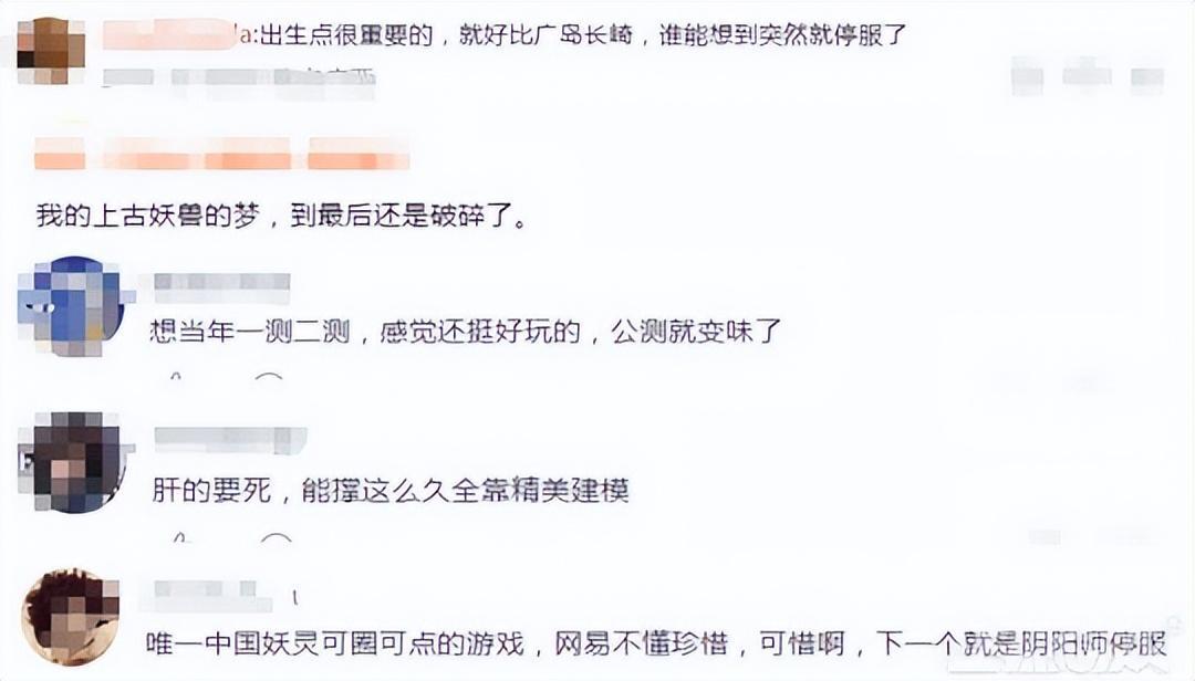 對於遊戲的停運,有網友就調侃,出生點很重要的,就好比廣島長崎。也有網友感慨,我的上古妖獸的夢,到最後還是破碎了。還有網友表示,想當年一測二測,感覺還挺好玩的,公測就變味了。還有網友吐槽,肝的要死,能撐這麼久全靠精美建模。也有網友表示,唯一中國妖靈可圈可點的遊戲,網易不懂珍惜,可惜啊,下一個就是《陰陽師》停服。