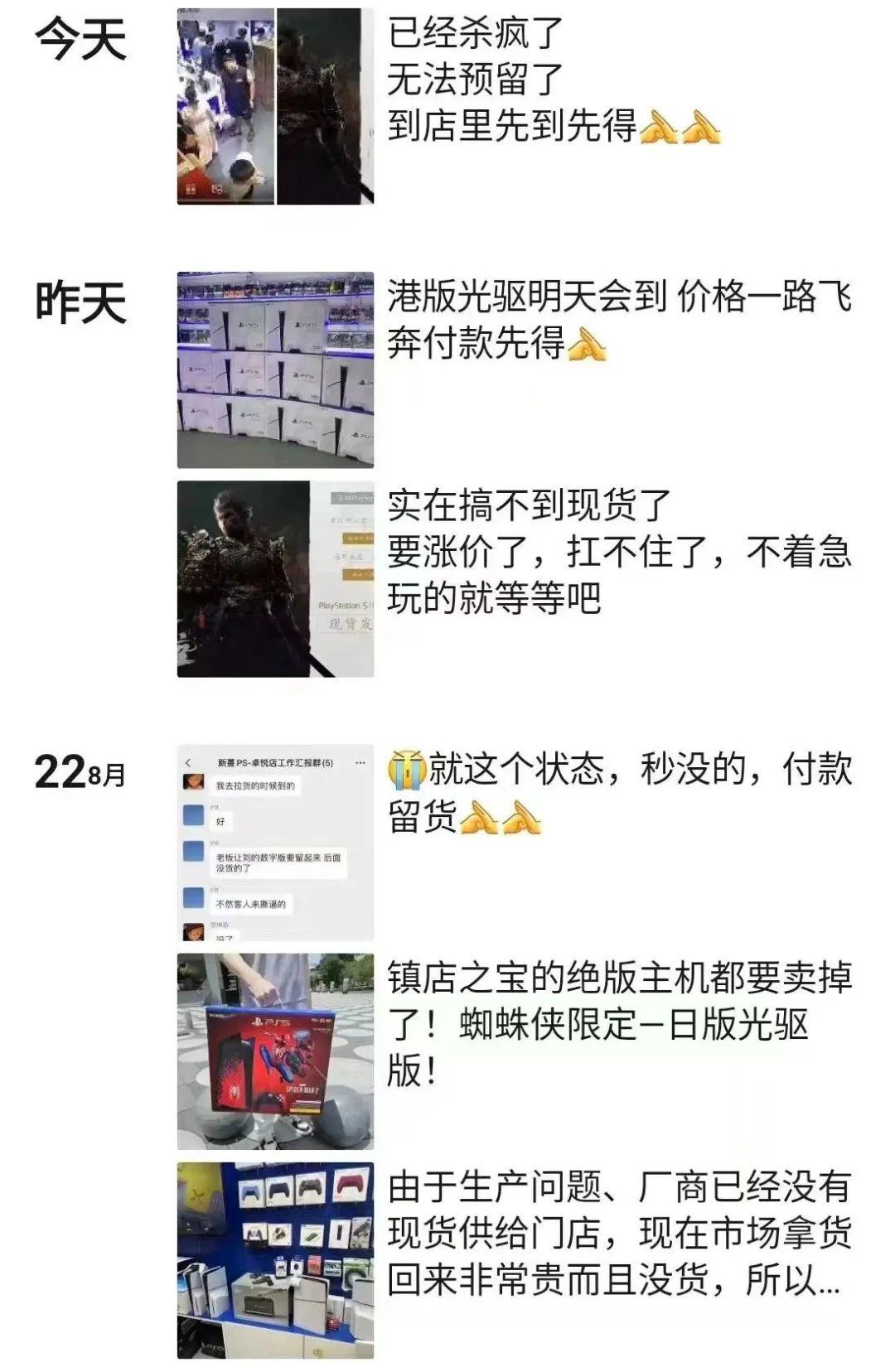 看目前的情況,黑神話真的大幅推動了PS5和電腦硬件市場的增長。電商平臺數據顯示,RTX40系顯卡筆記本成交額同比增長100%,電腦組件成交額同比增長120%。而目前在淘寶、京東等平臺,索尼PS官方旗艦店的PS5都已賣斷貨。在第三方商家的店鋪,PS5則迎來了一波大漲價。