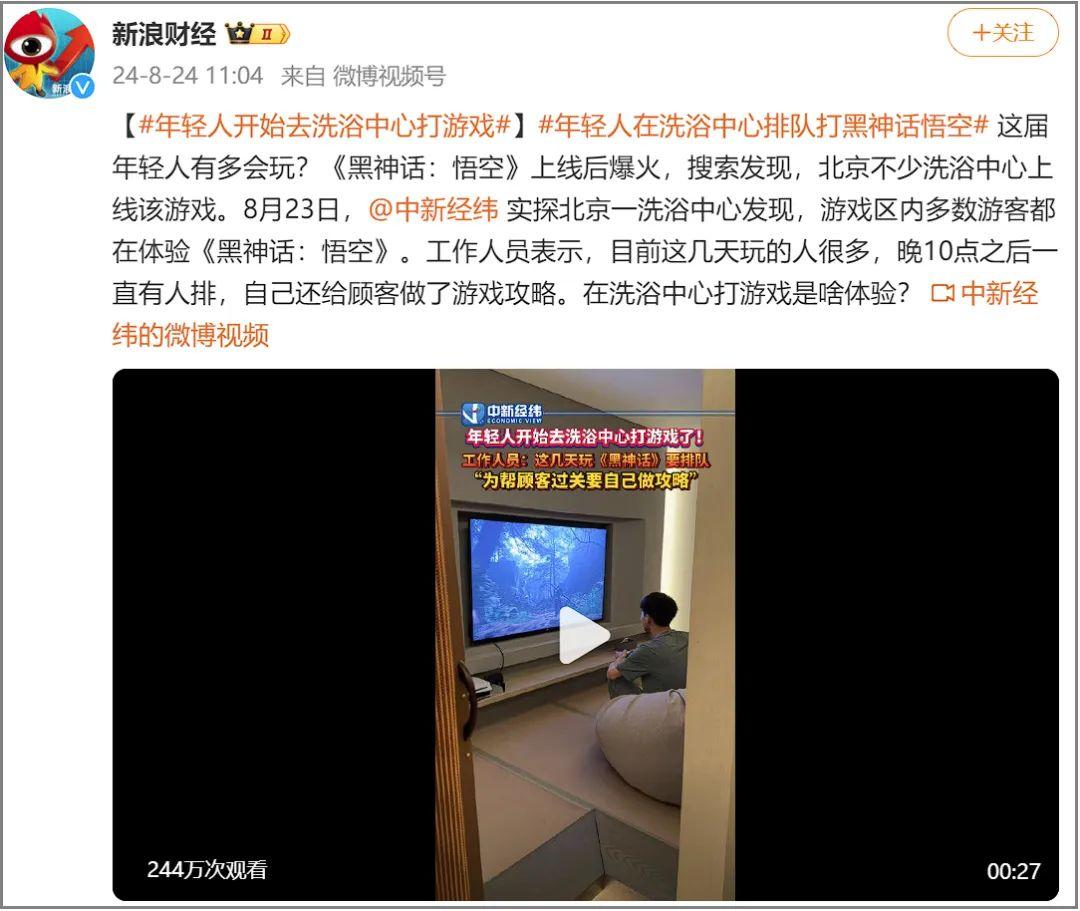 美團數據顯示,北京上百家洗浴中心上線《黑神話:悟空》遊戲暢玩服務