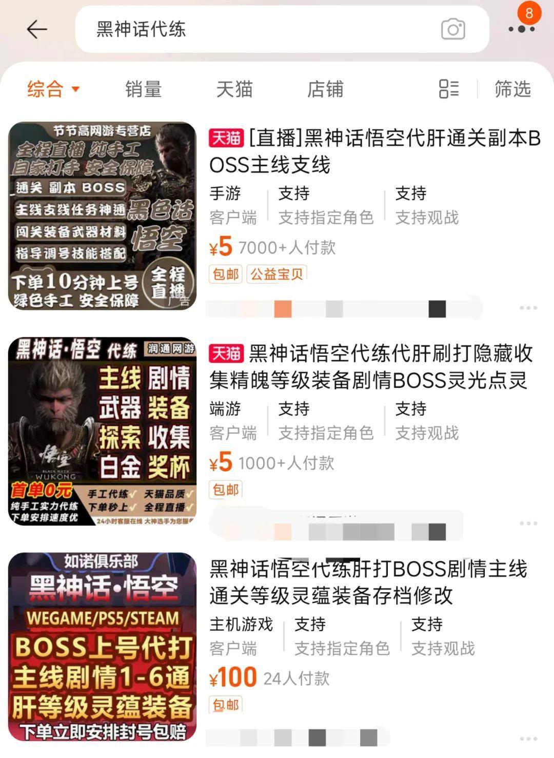 從淘寶的“steam代安裝”“黑神話代練”等黑產的銷量上都能看出