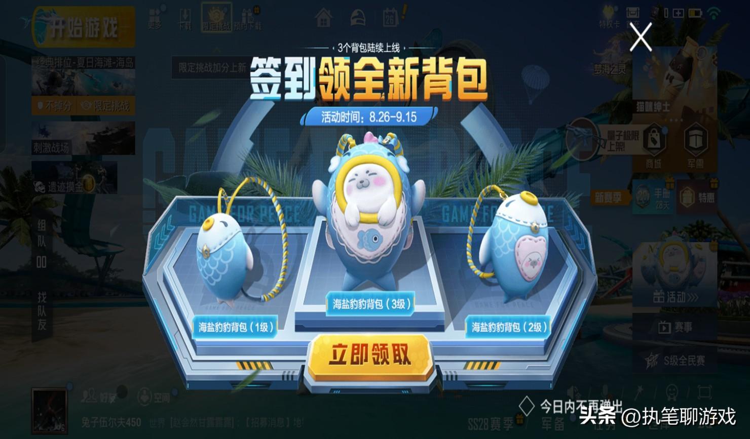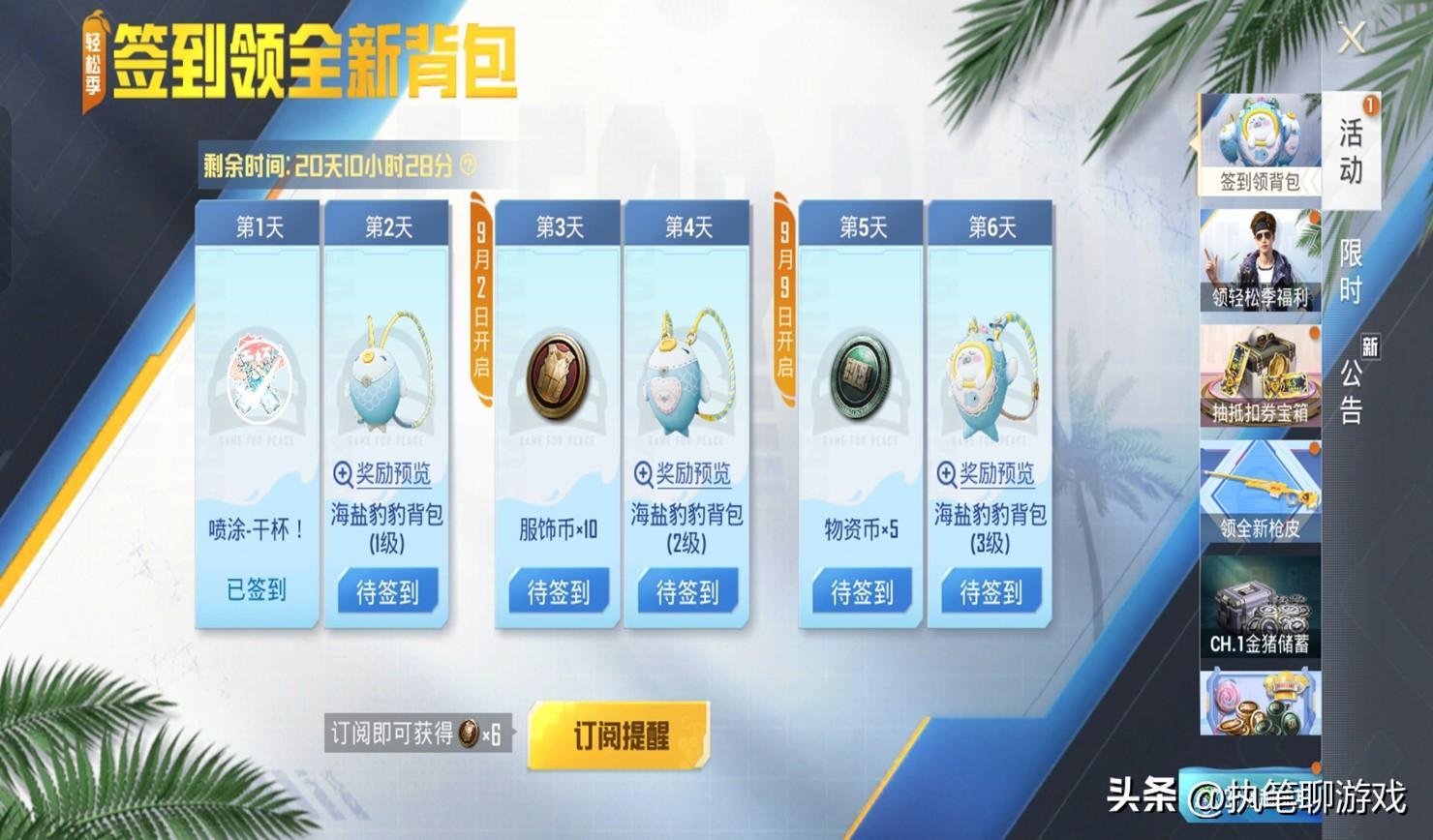 聊完了關於抽獎機制的一些玩家總結後,光子又拿出了一個全新的福利:海鹽豹豹系列的3個揹包,以簽到的方式直接獲得。