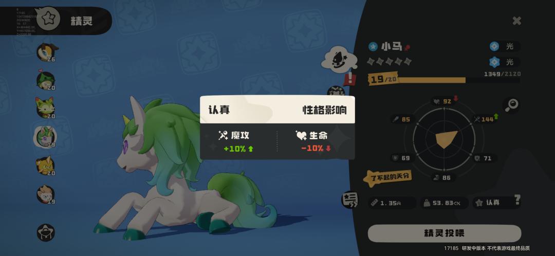 比如每隻精靈都有自己獨特的性格、天份,和與玩家間的親密度,這些養成要素也會對戰鬥產生影響。這在很多精靈捕捉、養成系統中,還是較爲常見的設計。