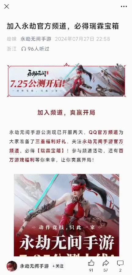 部分頭部產品在引導用戶加入頻道時,也是直接在微信文章裏嵌入小程序,讓玩家直接跳轉,不需要專程從QQ進入。