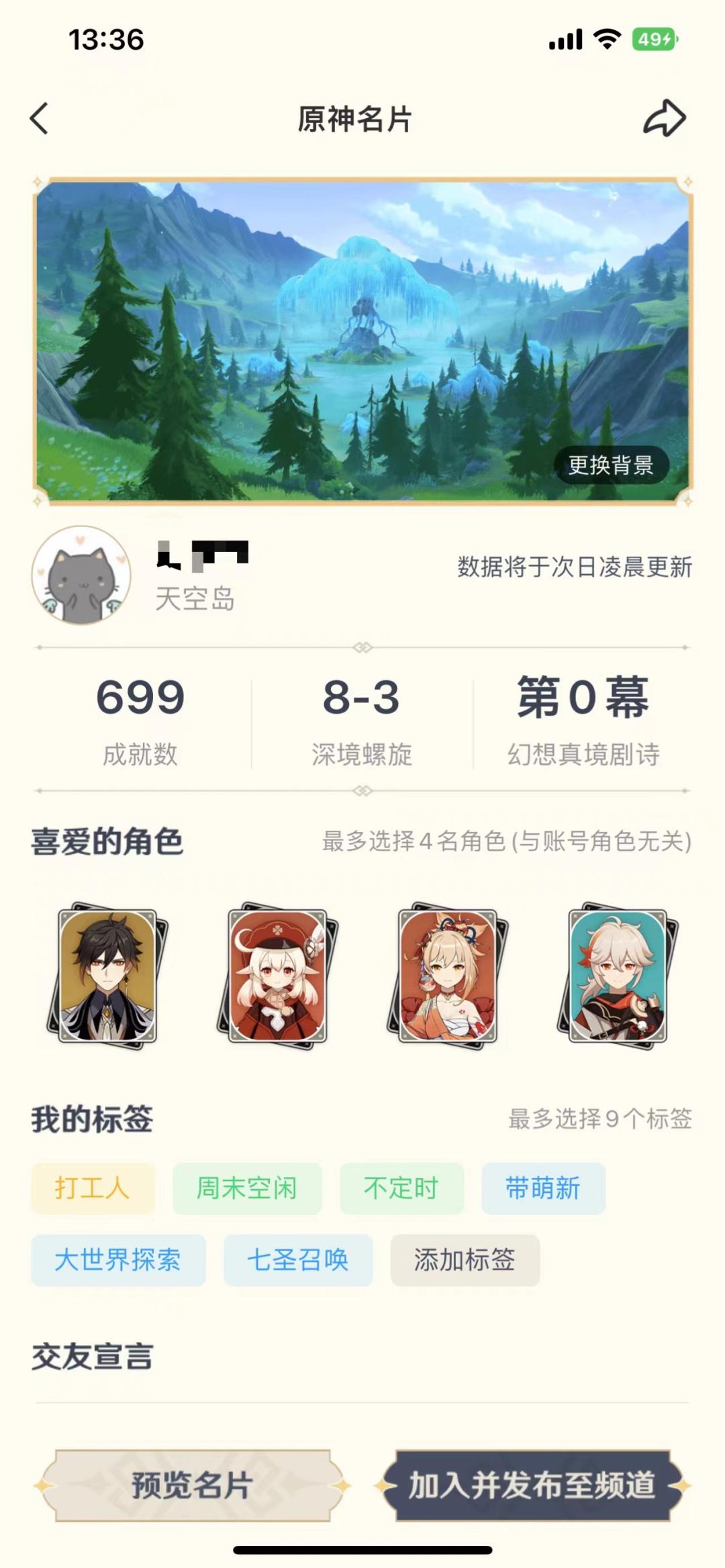 玩家可將自己在QQ裏的原神名片發佈至