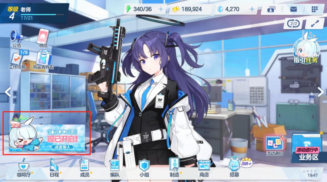 《蔚藍檔案》左下角:官方QQ頻道現已開啓