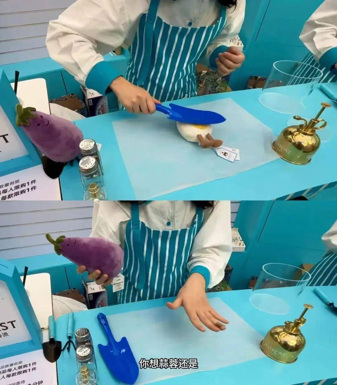 這讓我想到之前jELLYCAT爆火的“過家家”售貨法,比如你要買個漢堡玩偶,售貨員會“真誠地”問你,要不要煎一下,還會拿出料理紙和打包盒給你把漢堡打包完,才能結賬。