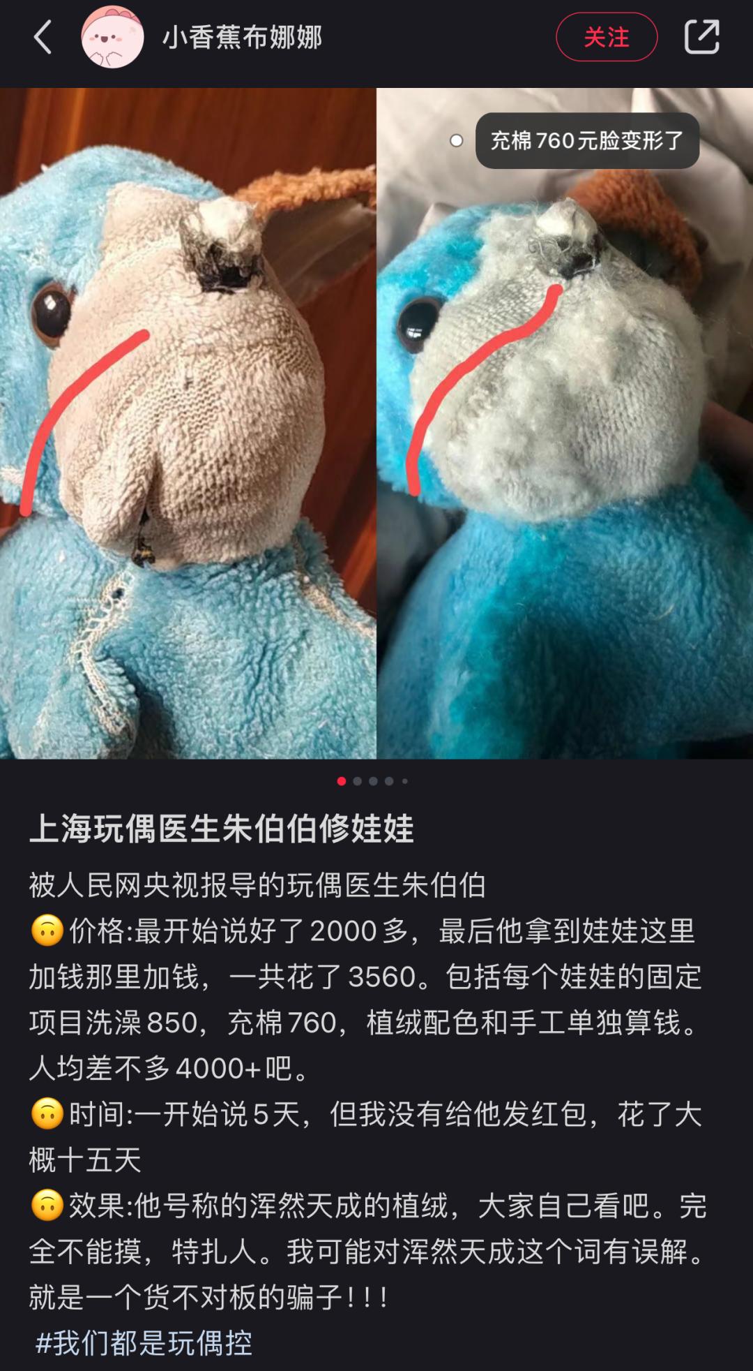 不過,由於個體經營缺乏強監管,也偶爾會出現一些玩偶醫生利用顧客對玩偶的愛來斂財的情況。