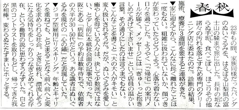 在讀賣電視臺的電視節目走訪中,負責娃娃清洗業務的經理志村先生,向我們展示了清洗娃娃的完整步驟。