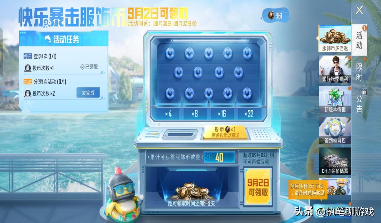 通過投幣增加池子內的服飾幣數量,並且要在9.2的當天進入遊戲,錯過之後就要等下一次了哦,嘿!