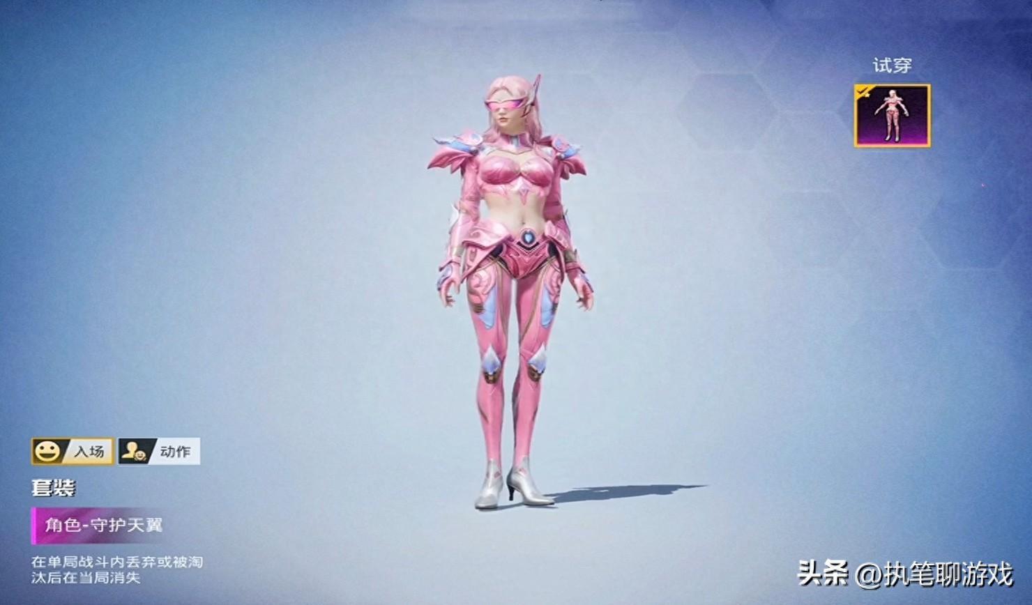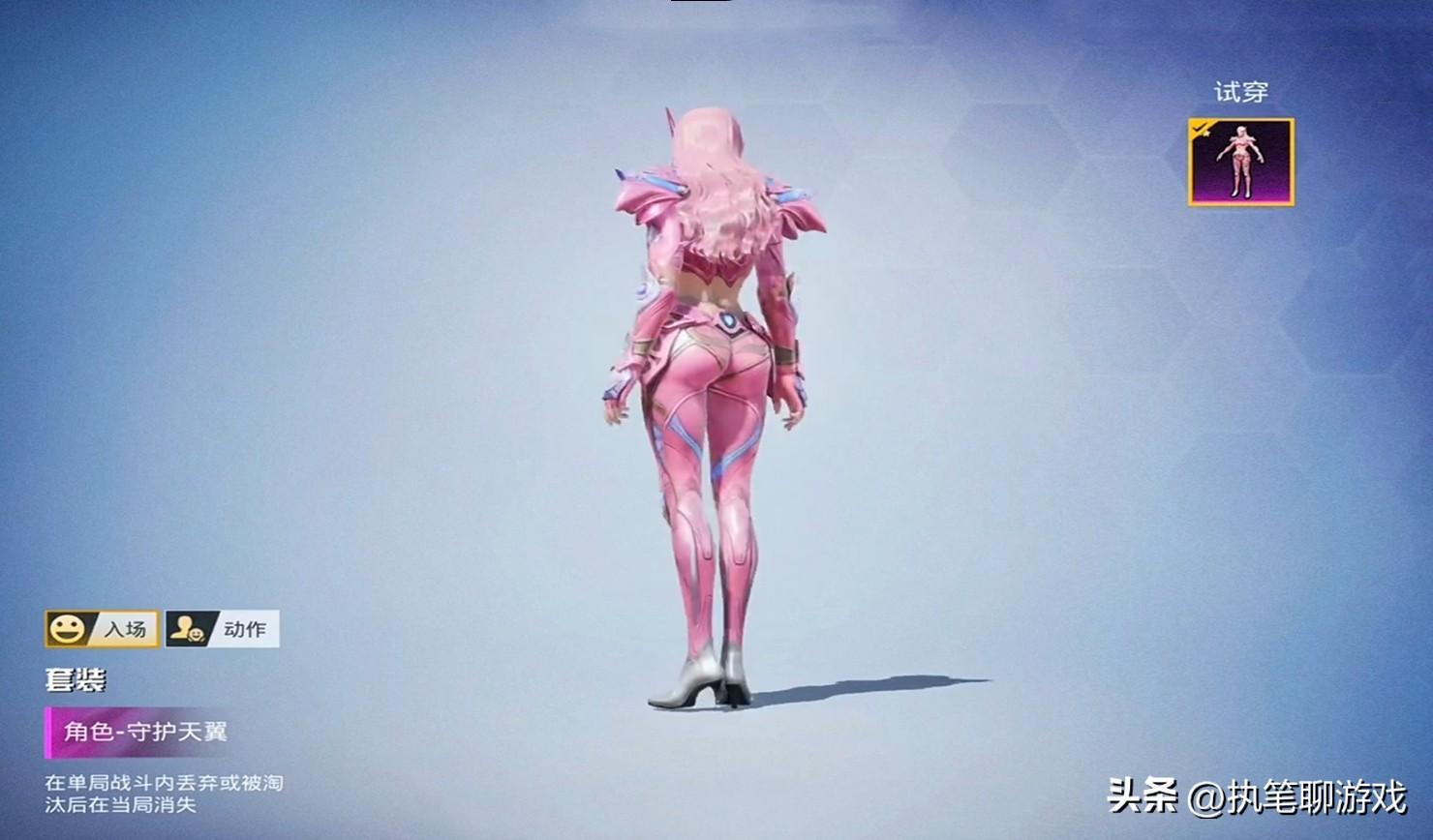 如圖所示,“守護天翼”是一個粉色等級的角色類套裝,凹凸有致的身材,看起來相當曼妙,特別是“露臍裝”的版型設定,確實起到了讓玩家眼前一亮的作用。