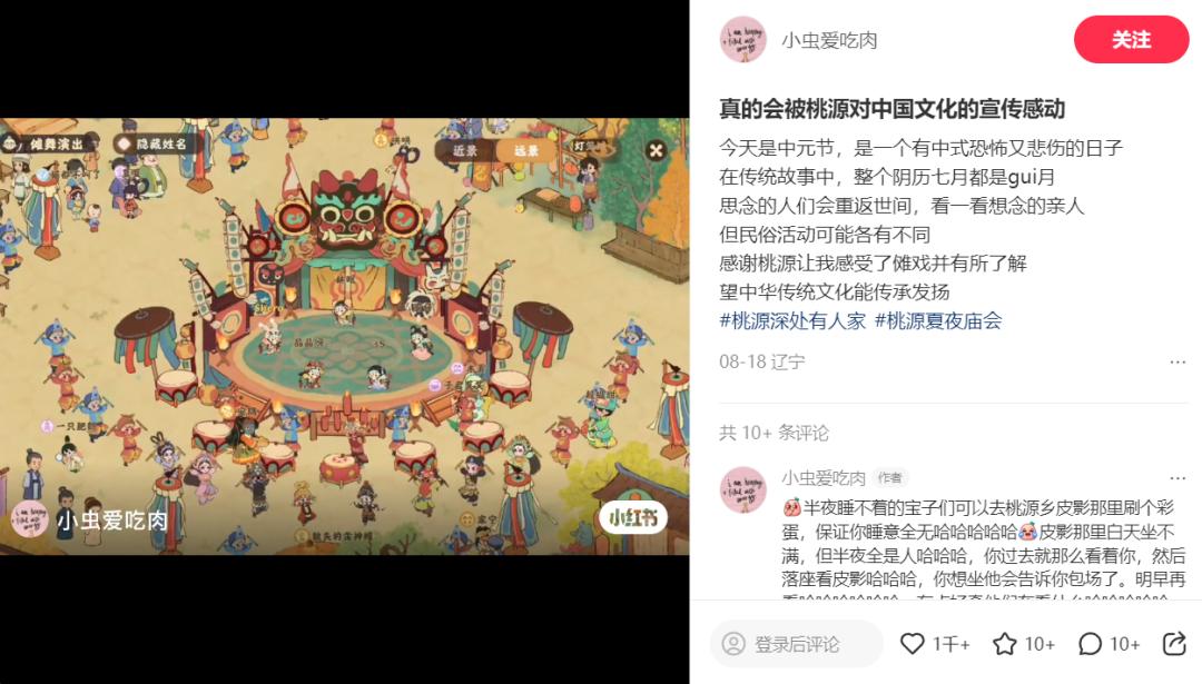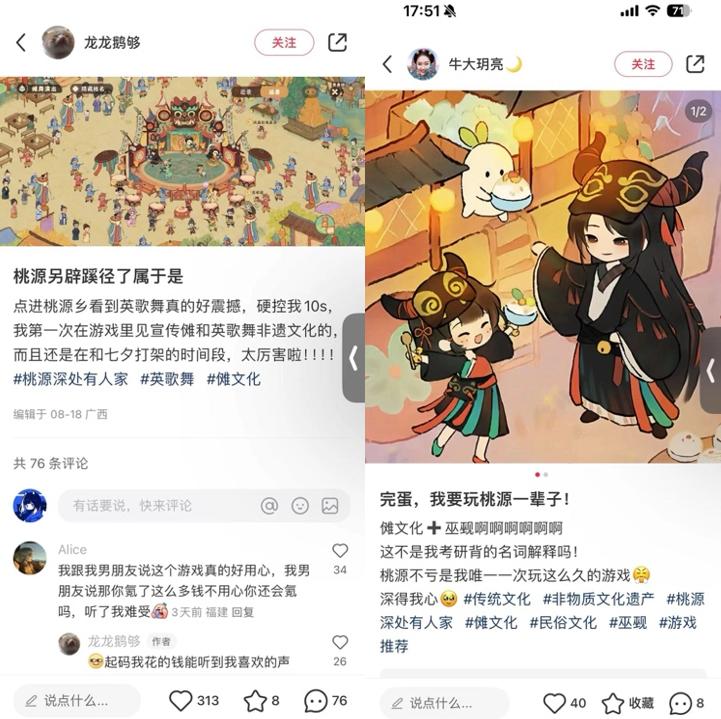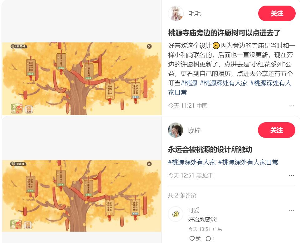 但別說,站在玩家的視角,這種不走尋常路的打法反而更有新鮮感,於是半夜刷小紅書,類似「半夜睡意全無」「英歌舞好震撼」「硬控我10秒」「完蛋,我要玩桃源一輩子!」的評論一時間冒出來不少。